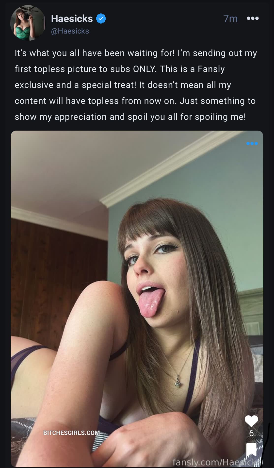 Haesicks is a petite southern TikTok star with doe-eyed natural beauty and a soft belly. She's a nerdy gamegirl who streams games on Twitch and builds Legos for fun. On Fansly, she shares lingerie pics, feet shots, lewds, and cosplay photos, but no nudes. Her TikTok account features her daily life, like enjoying a lazy day or getting a diagnostic laparoscopy for Endometriosis. She recently posted "I mean it can work as one" with 23K likes on Reels and showed off her sunshine-filled days by sharing selfies on Instagram. Fans adore her natural body, often asking to pet the dog in her videos. Nude tiktok haesicks adult photography leaked. Latest content of thot influencer haesicks is teasing her tits on tiktok flashes and girl images leaks from from August 2025 for adults on bitchesgirls.com. Hot haesicks gone wild. Haesicks lingerie pictures You can find here more of her leaks than on reddit and subreddits. Do you know what is real name of haesicks?. She is definetly F18+, but do you know what is haesicks age?